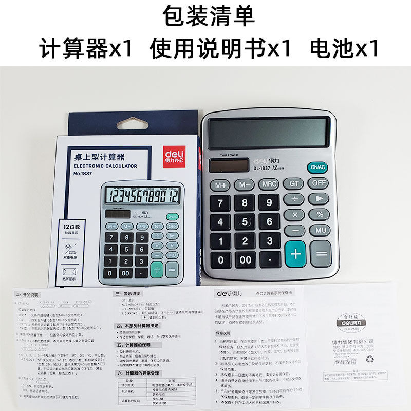 DILI Desktop Calculator DL-1837 Небольшой легкий и портативный 12-значный на большой экране Солнечные компьютерные школы начальной школы Специальная машина № 1837.