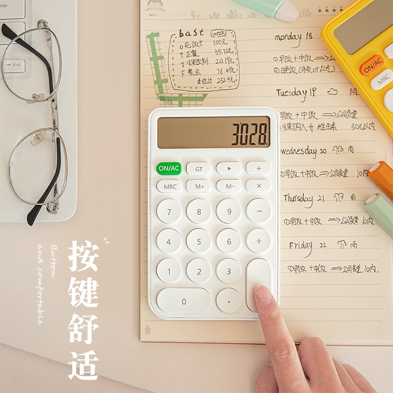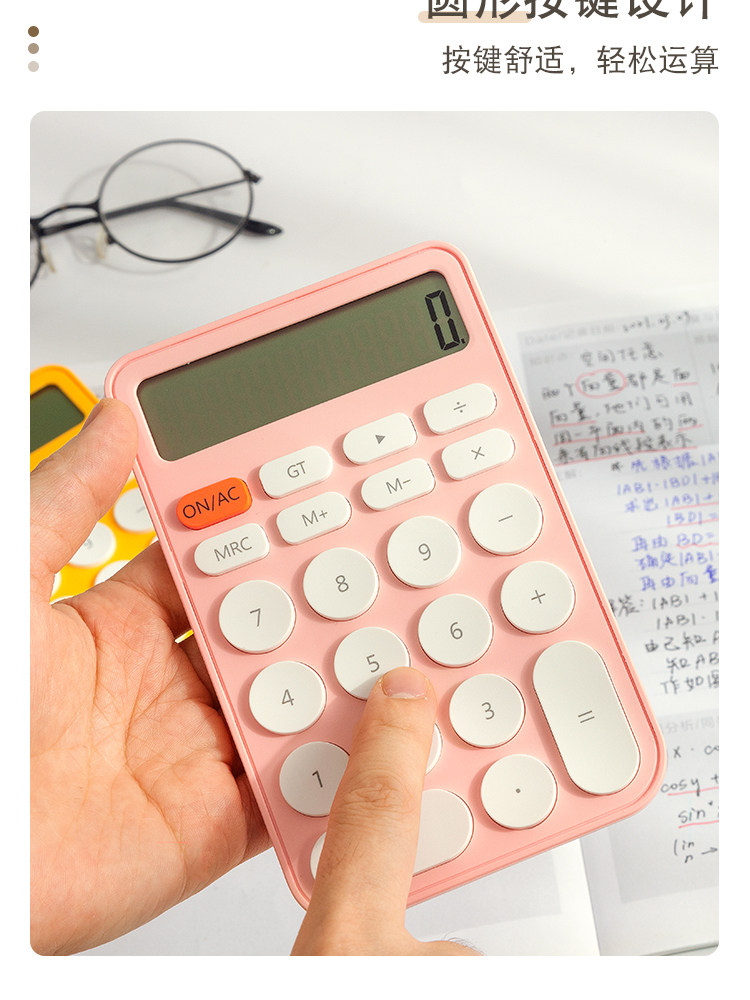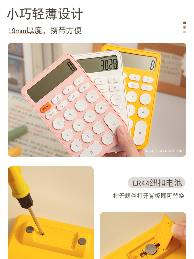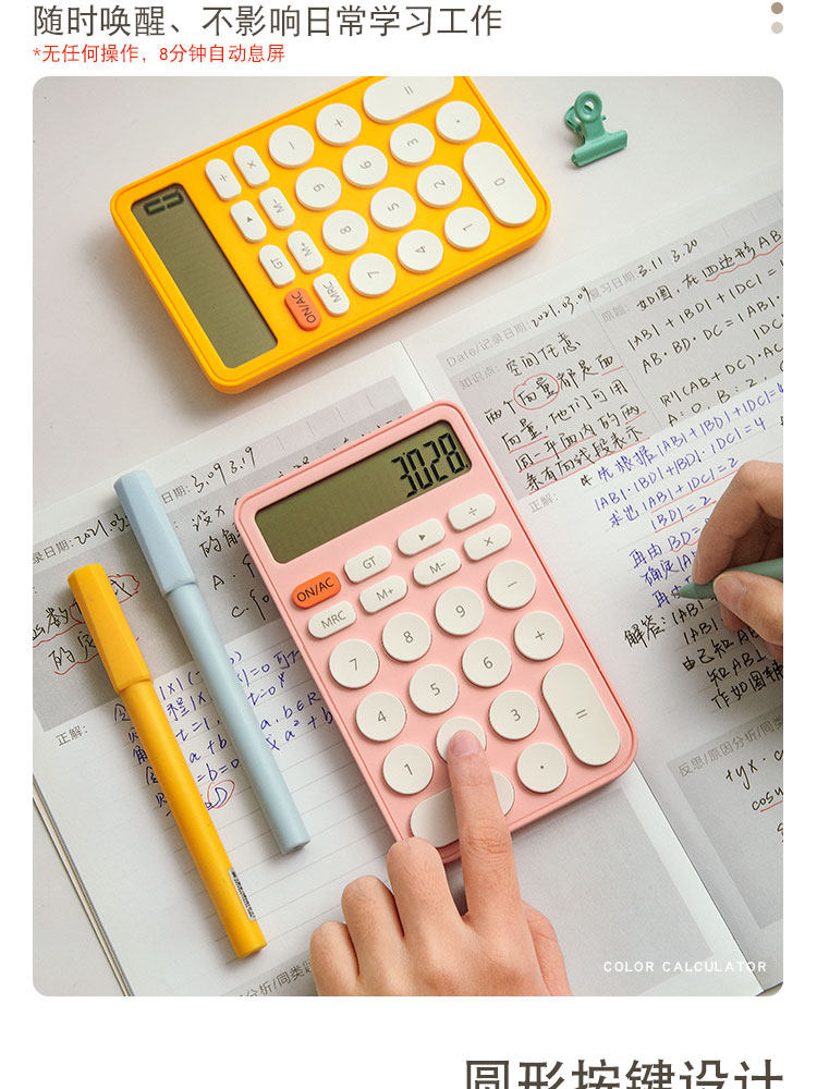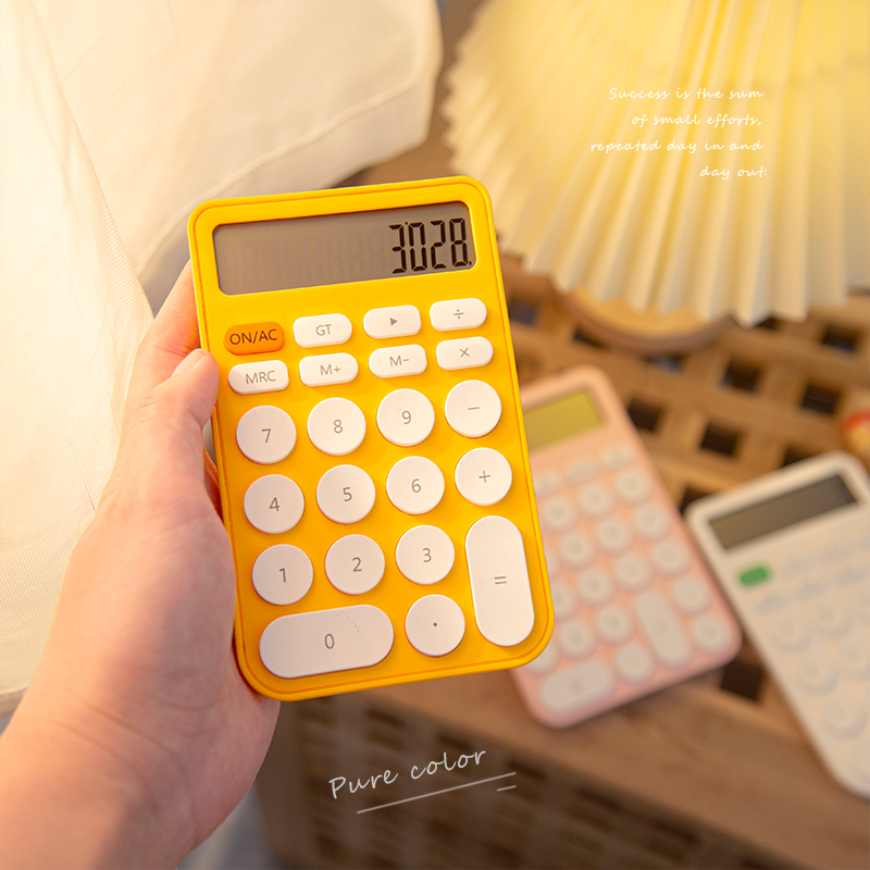 Три -мой класс простых учеников с твердым цветом с милыми мини -портативными электронными калькуляторами офис