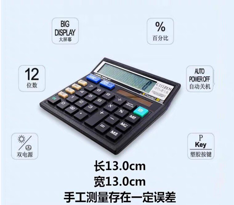 | Цвет: | Casio GY-1220 большой голосовой калькулятор, Casio DY-120 Средний номер голосовой калькулятор, Casio My-120 маленький голосовой калькулятор, Утренний MG-500 (10 цифр), Утренний свет молчаливый компьютер (12-значный номер), Утренний легкий голосовой компьютер (12-значный), Deli DL-500 (10 цифр), Citizen CT-500II Copper Edition (10 цифр), Citizen CT-512 (12-значное число), Citizen CT-500 (10 цифр) |