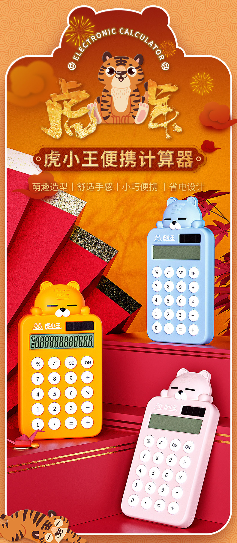 广博 Tiger King мультфильм ученик начальной школы калькулятор Интернет знаменитости красивые детские милые портативные специальные бытовые мальчики и девочки модель богини на солнечной энергии удобная кнопка научный компьютер