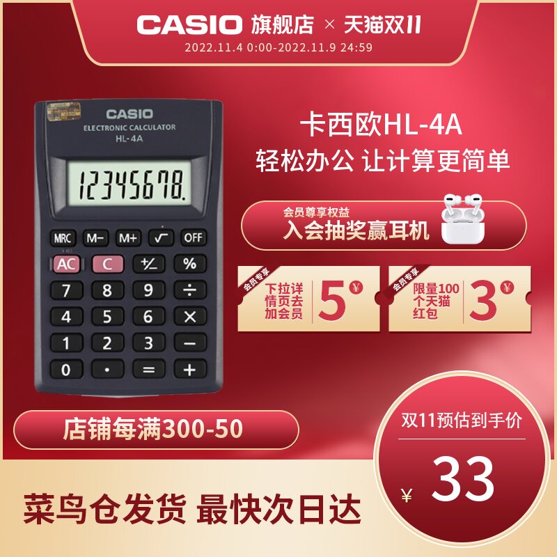 Casio/Casio HL-4A портативный калькулятор для бизнес-поездок Портативный бизнес-канцелярские товары Поставки канцелярских товаров.