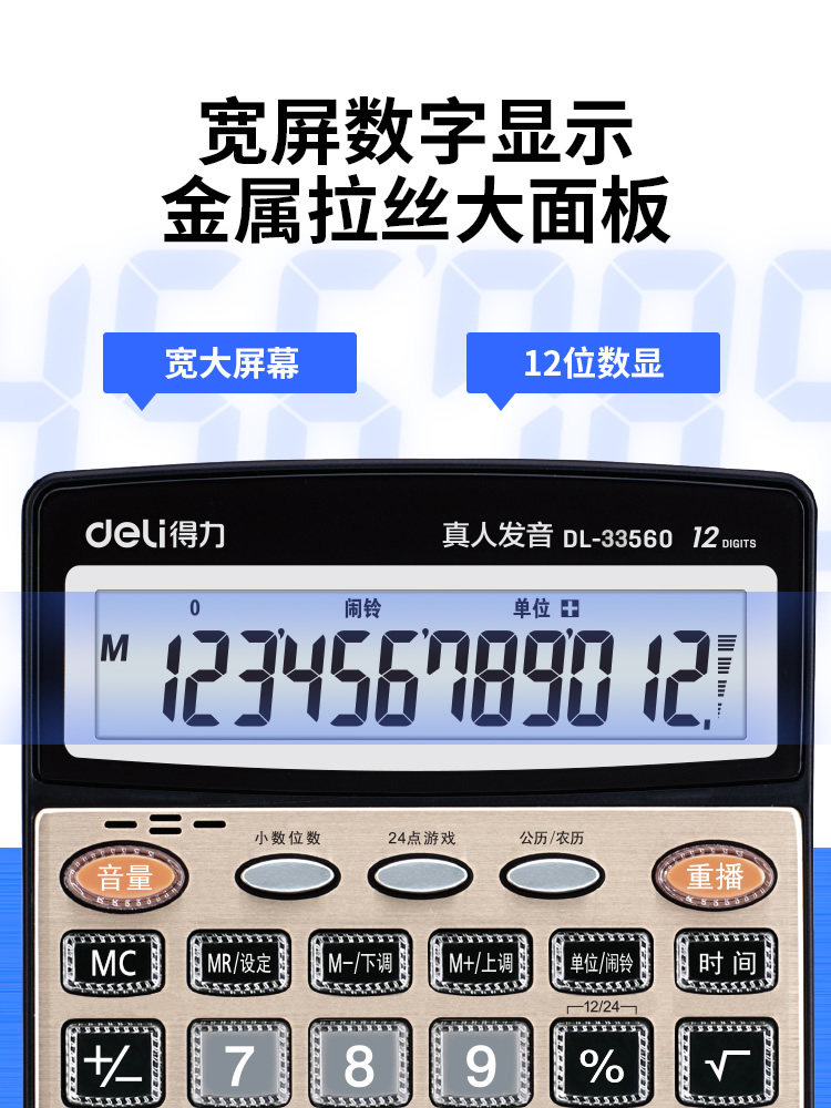 Deli Compuctor с голосовыми калькуляторами бизнес -офис много -функциональный номер 12 показал большую кристаллическую большую кнопку большого экрана Коммерческий компьютер Финансовый учет специальный голосовой модель реальное произношение