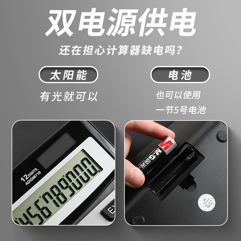 Калькулятор CHENGUANG Солнечный батарея с двумя мощными финансовым учетным учетом специального офисного бизнеса с большим экраном большой ключ ADG98716 Многофункциональная металлическая панель 12 -бит -рекордер.