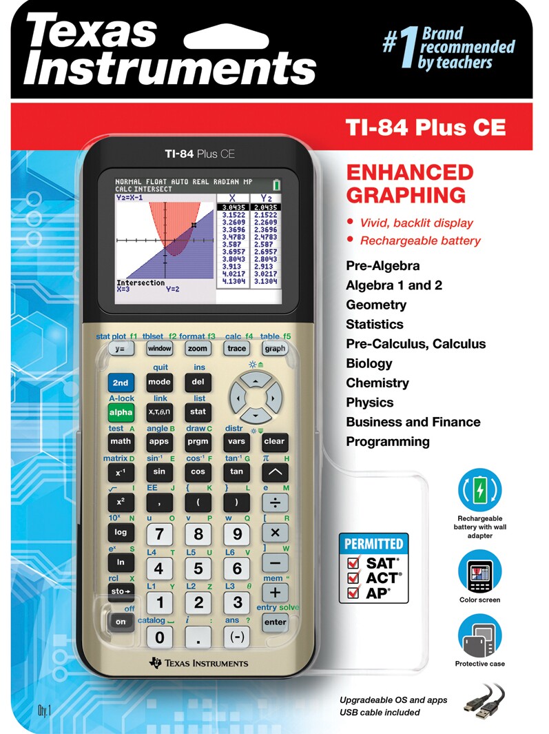 [Официальный магазин Техаса] Техасский инструмент TI-84CE Plus Gold Graphic Programming Calculator SAT/AP/PSAT/IB Экзамен Рекомендуется 84 калькулятор