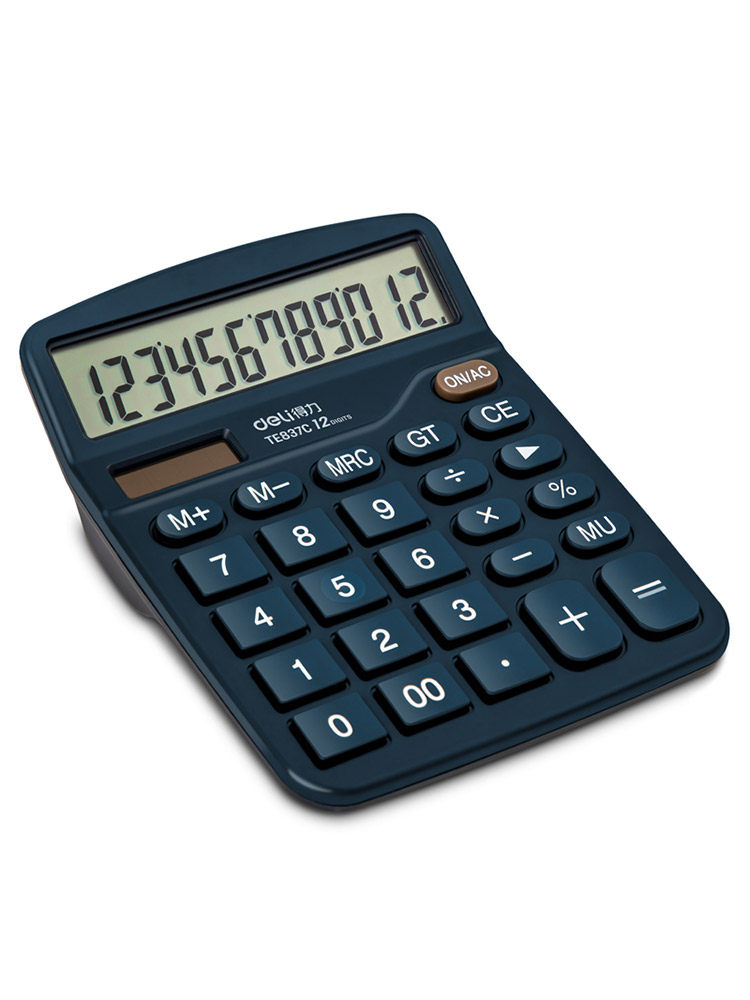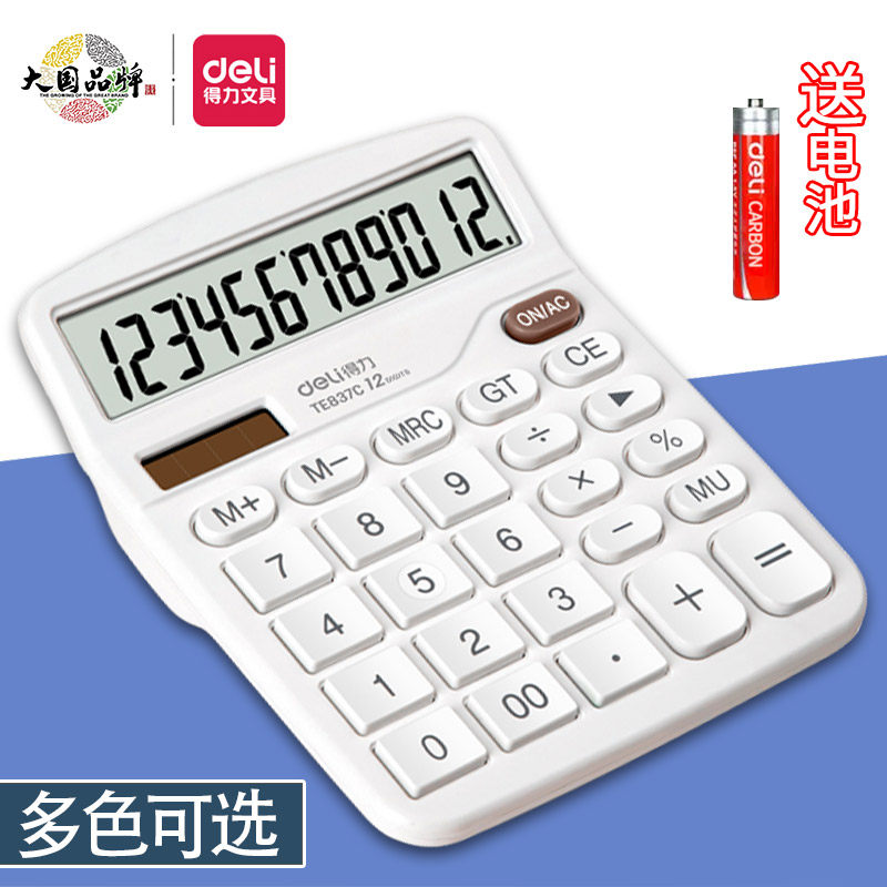 Deli TE837C Компьютер большой экран 12 цифр показывает двойное энергоснабжение Солнечное финансовое калькулятор для студентов для студентов