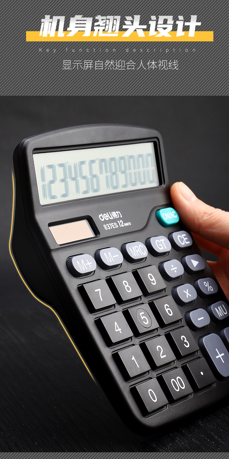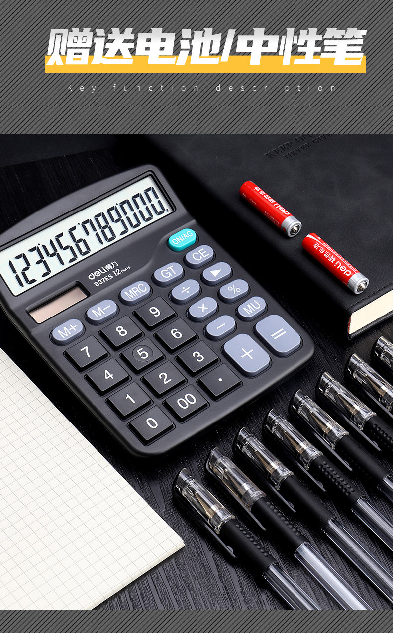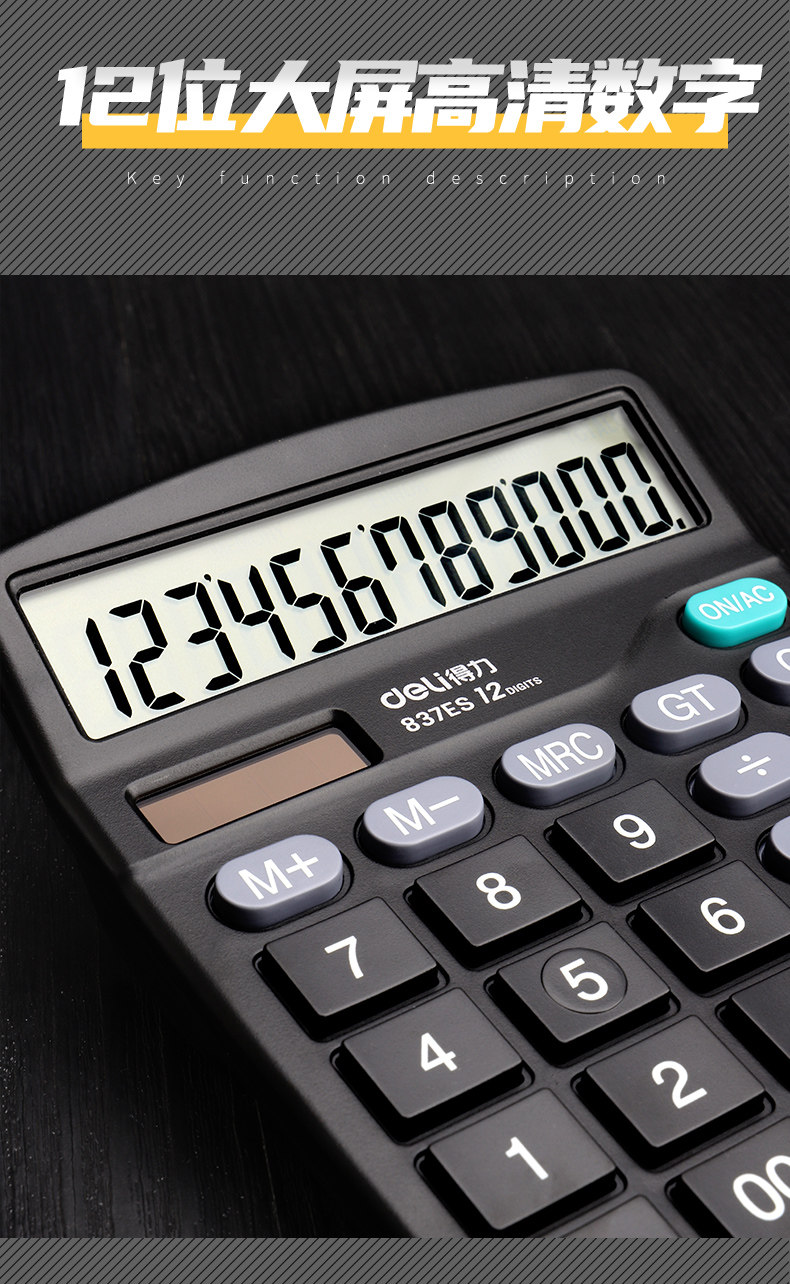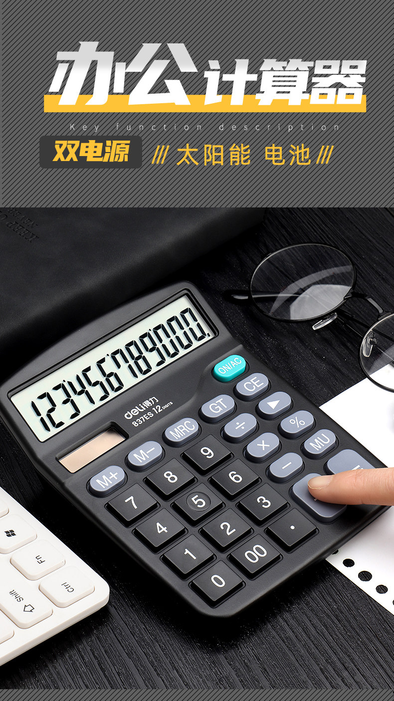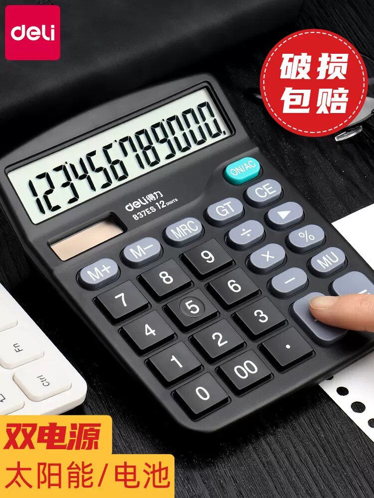 得力 Калькулятор для офисного бухгалтерского учета Специальный 837 Солнечные элементы с двойным назначением