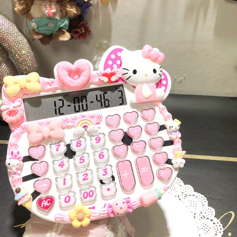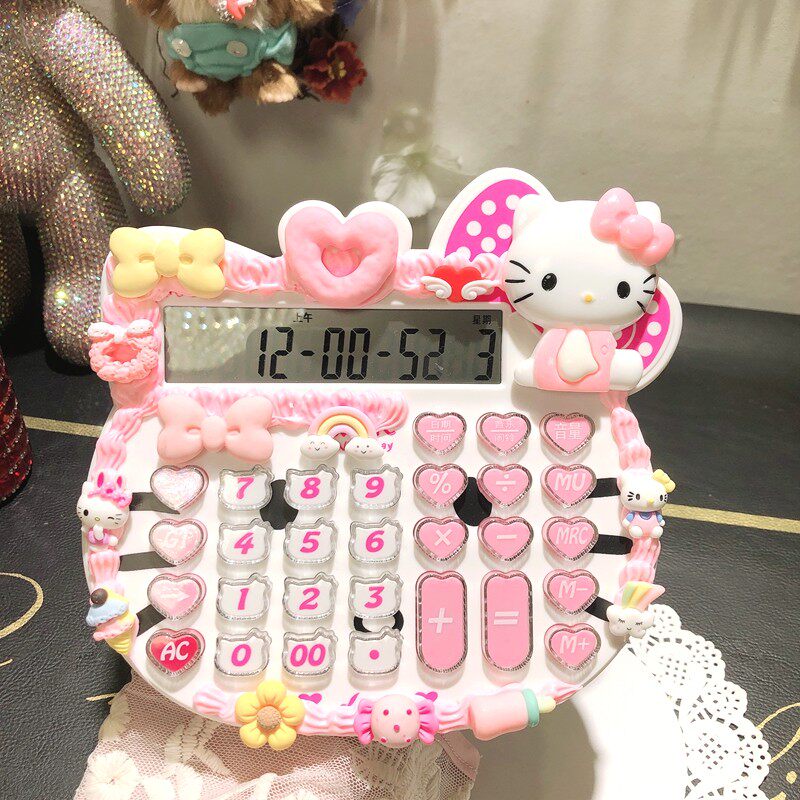 Симпатичная девушка KT Cat Cream Cart Card Card Калькулятор так же, как и обычные цифры для студентов, расчет большой ключ