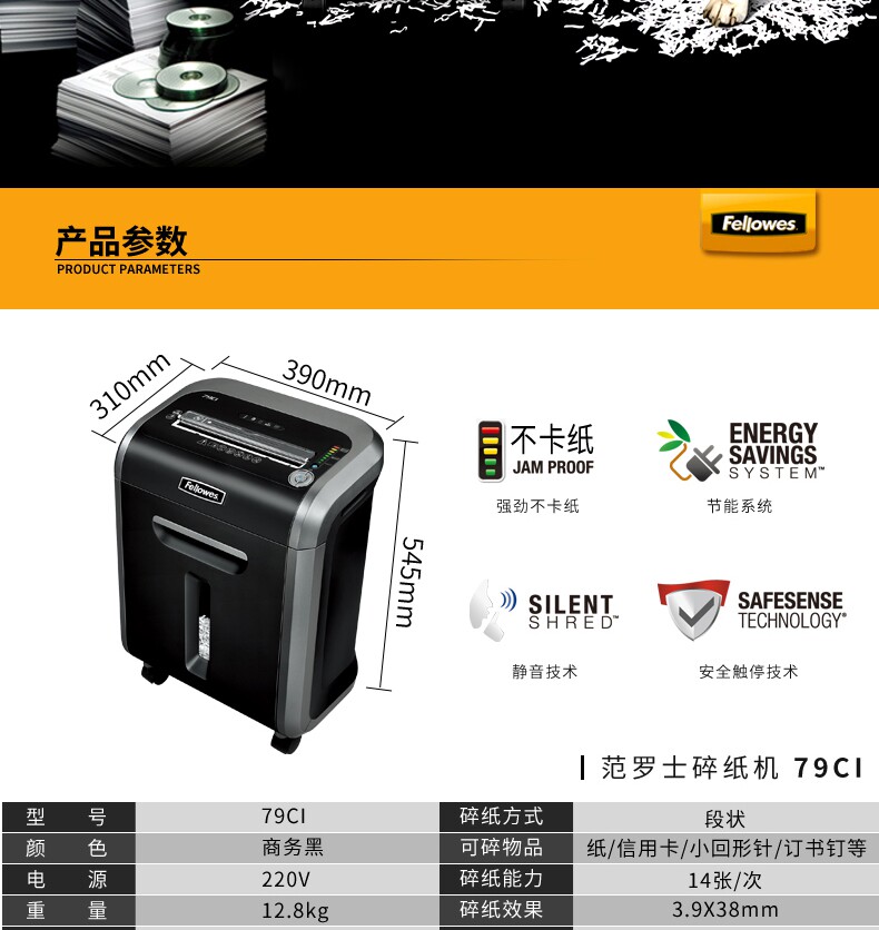 Fellowes van Rosen 79ci Офисный тип бумаги измельчитель 23 -Литер Выпрекивайте статическую карту, противоречащая бумага, можно раздавить бумажную карту карты