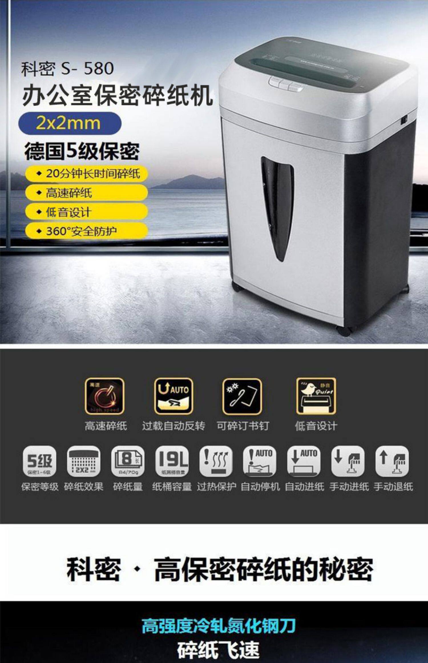 Kobe S580 бумажная бумажная машина Большой коммерческий офис Broken Paper Machine Industry Ultra -Power Graval Glass файл.
