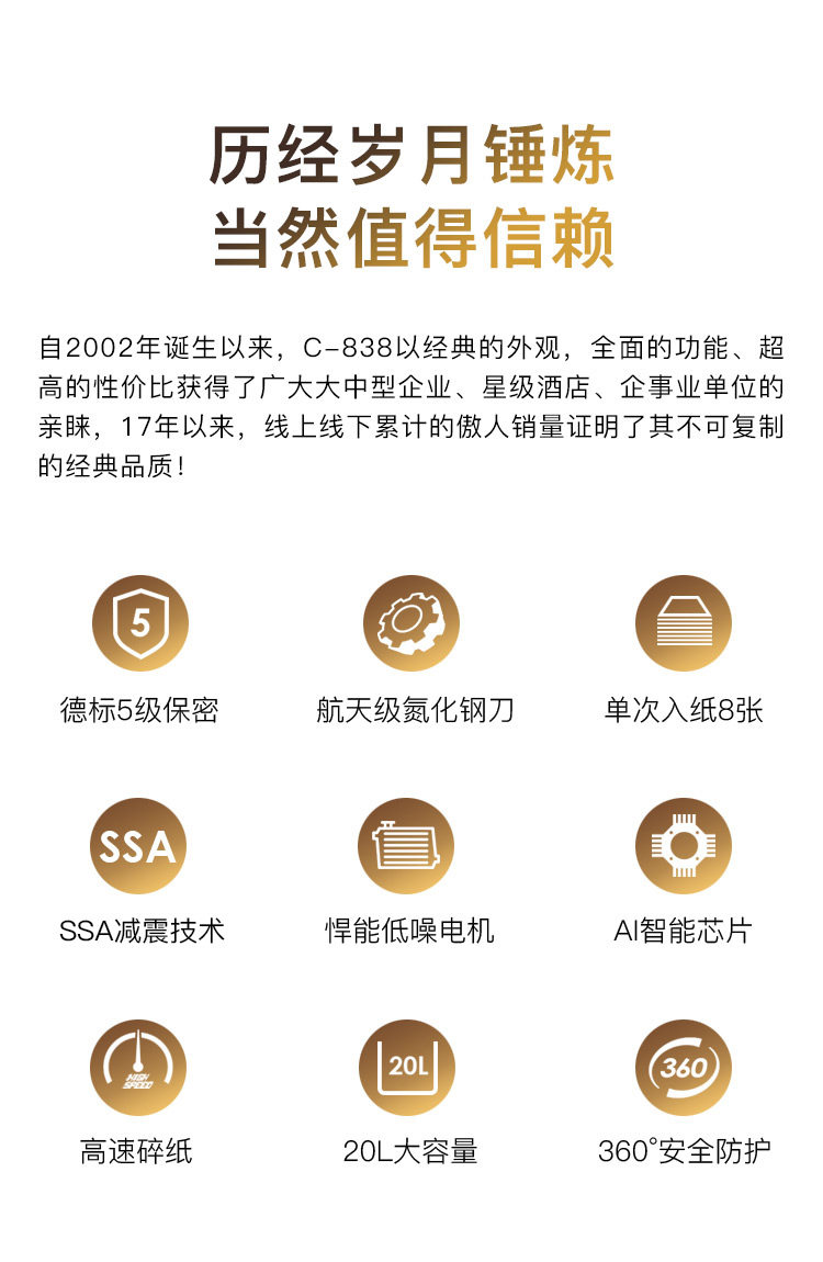 - C-838H Сломанная бумажная карта Игла (пятиуровневая конфиденциальная непрерывная разбитая бумага 10 минут) 20L черный