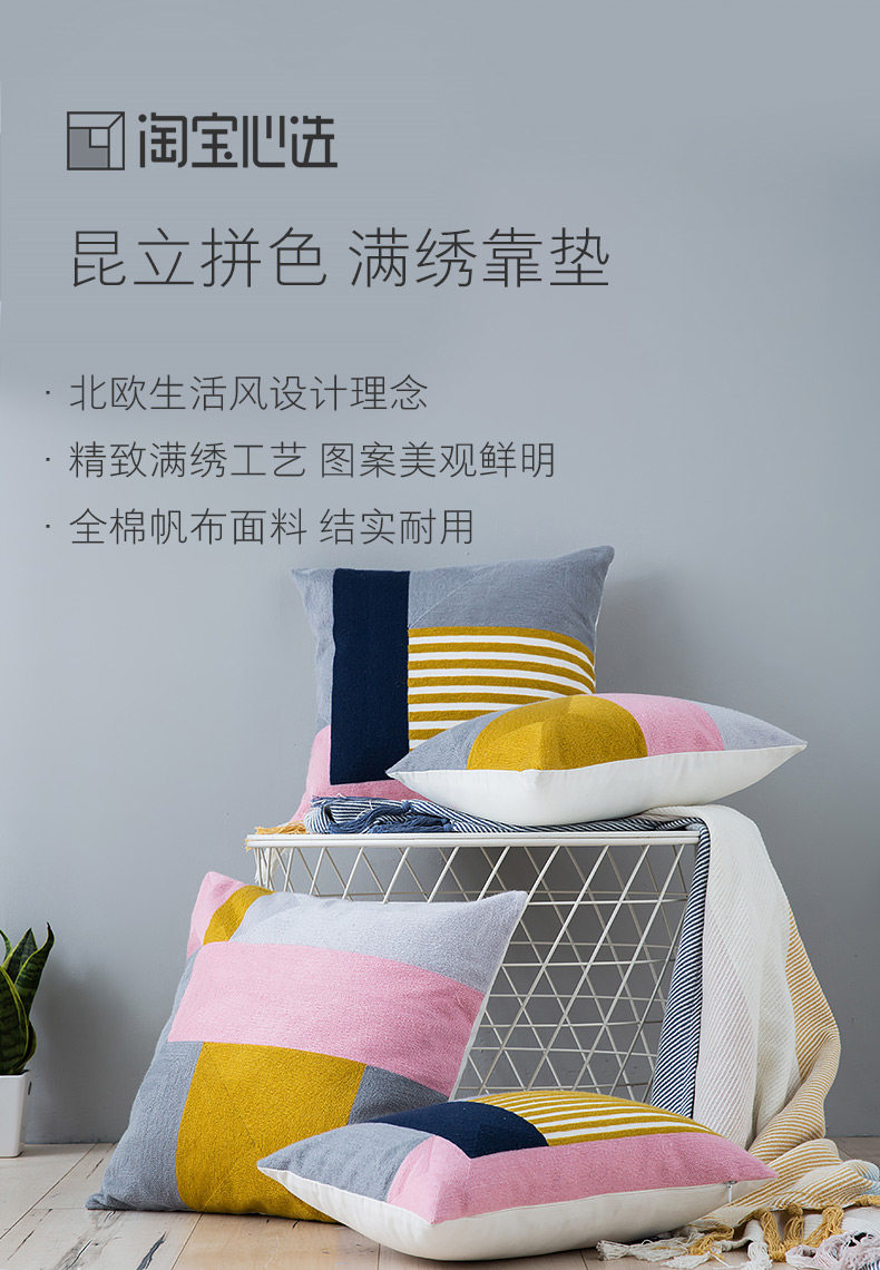 [Выбор сердца Taobao] Цвет кунминга, полная вышивка, подушка для прикроватной подушки, подушка, офис, подушка для сна талии