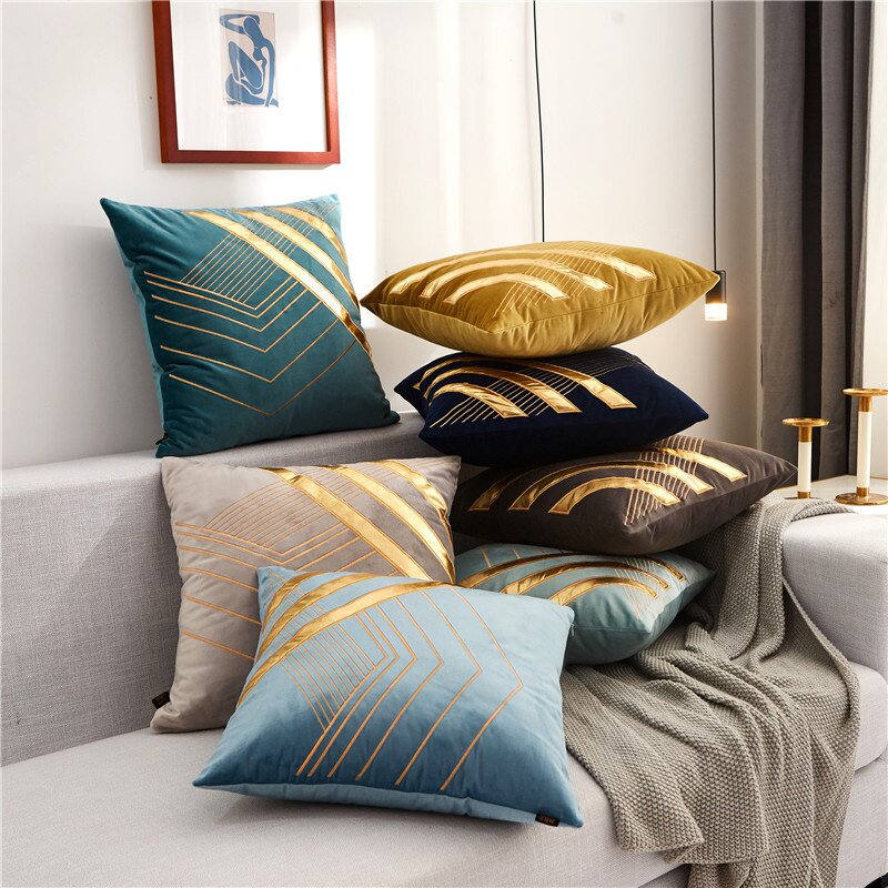Простая и современная подушка с высокой точки зрения в гостиной дивана.