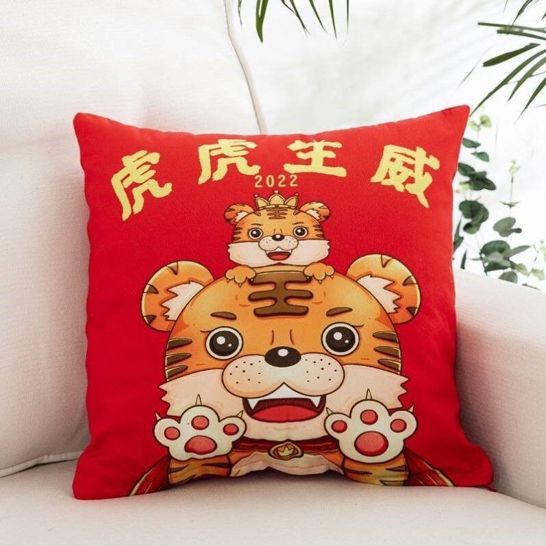 Мультяшная подушка для сна для домашнего использования, весенняя красная наволочка для кровати, 2022, тигр