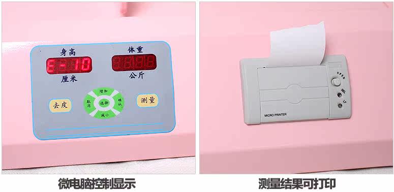【Функция】: Измерьте длину и вес ребенка, отобразите текущее время и распечатайте результаты измерений. Перед отправкой с завода вы также можете добавить другой печатный контент в соответствии с вашими требованиями, например название больницы, название отделения, номер телефона и т. д.