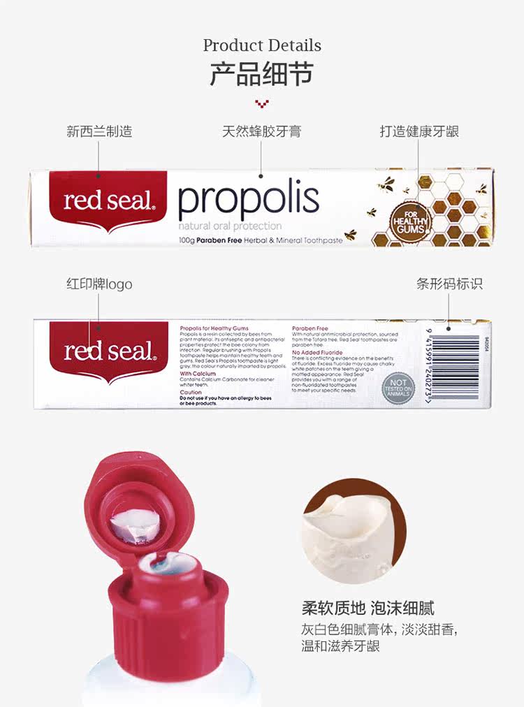 Зубная паста с прополисом Spot Red Printed, 100 г, защита десен, удаление пятен, освежение дыхания, десны, импортированные из Красного моря Новой Зеландии