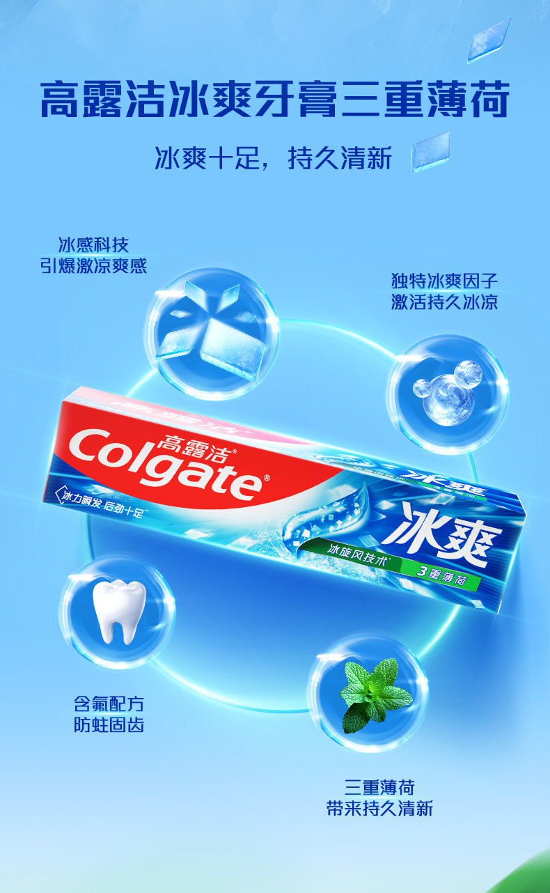 [Супер Ведро] Зубная паста Colgate Cooling Molecule Triple Mint 180 г * 3 палочки, сильная, холодная и длительная свежесть