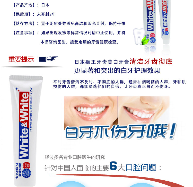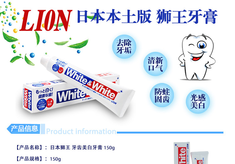 Япония Lion King White & amp; белая большая белая зубная паста сплошной анти -тот -декоративной мази 150 г