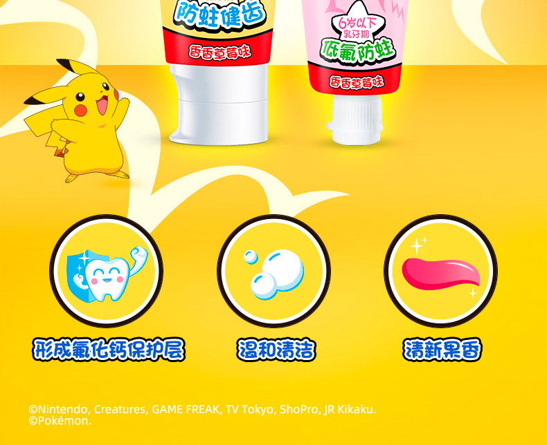 Зубная паста, мягкая гигиеническая клубника, покемон, 6-12 лет, защита от кариеса