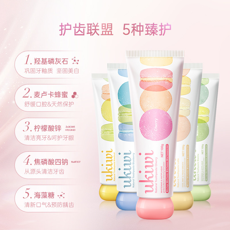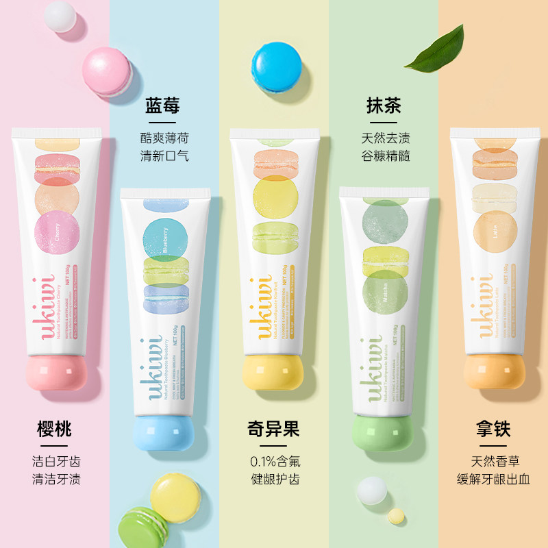 Ukiwi New West Elf Macaron Girl Зубная паста фрукты фрукты фрукты ароматный мрачный тонкий чистый вишня черничная белая желтая