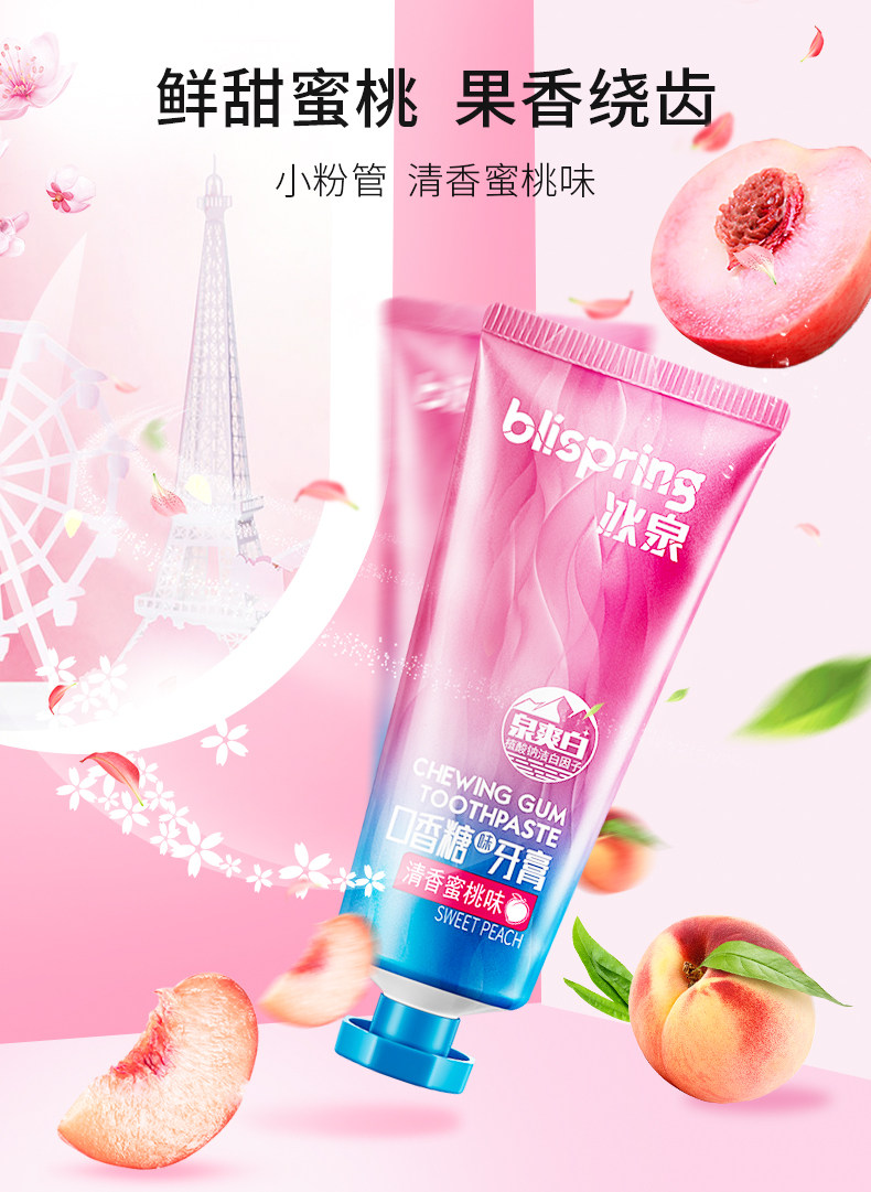 冰泉 Во рту зубной пасты вкусовая резинка 100G уменьшает неприятный запах дыхания, а желтые зубцы ярко -белые.