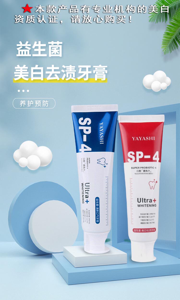 Пробиотик, зубная паста, осветляющая акула, свежий оральный дезодорант, удаление пятен