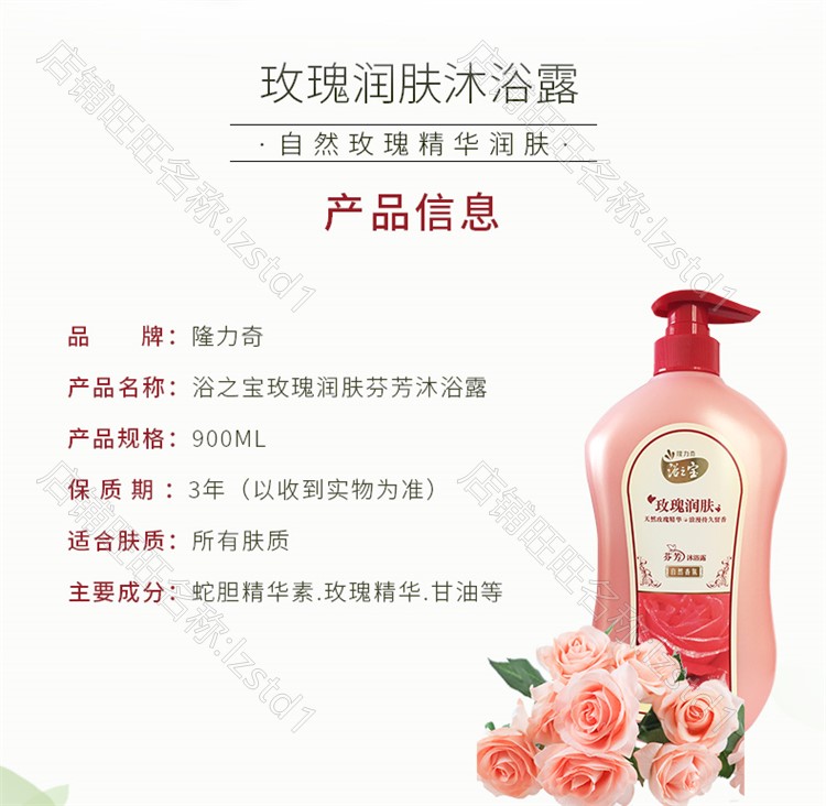 隆力奇 Парфюмированный питательный гель для душа подходит для мужчин и женщин с розой в составе со стойким ароматом, 900 мл
