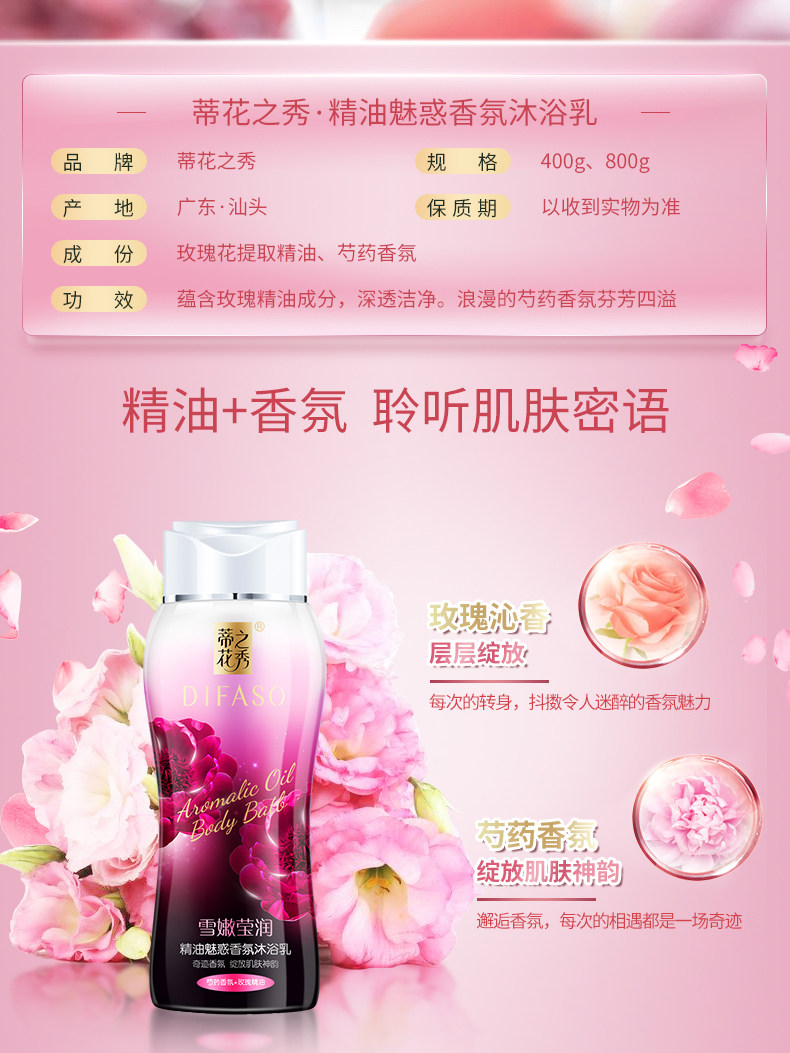 Гель для душа, увлажняющий вместительный и большой комплект с розой в составе подходит для мужчин и женщин, освежающее средство для принятия ванны, 800г
