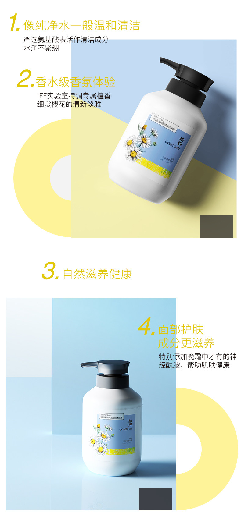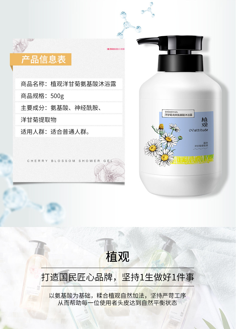 植观 Освежающая ромашка на основе аминокислот, гель для душа, лосьон подходит для мужчин и женщин со стойким ароматом, 500г