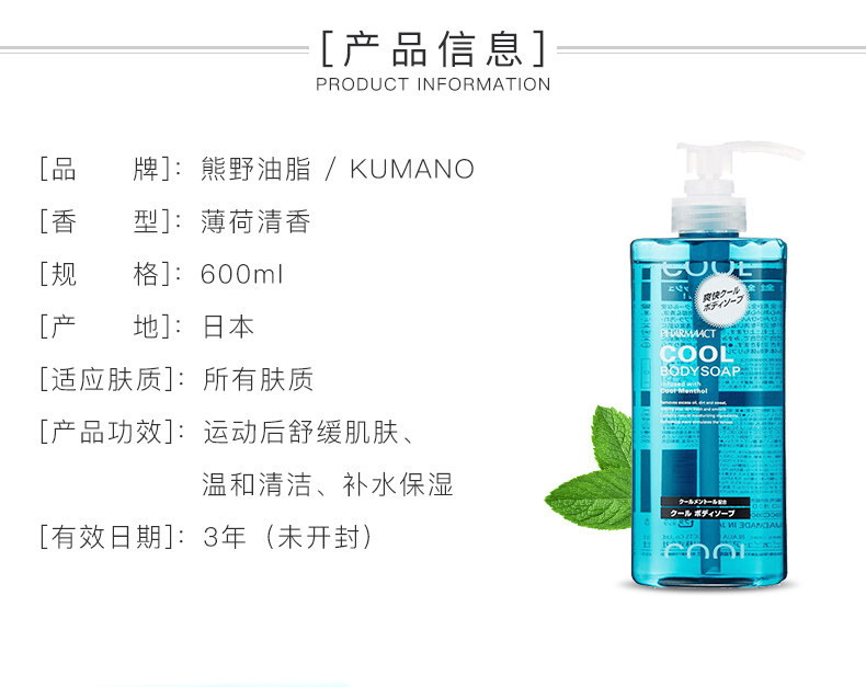 Японский импортный мятный прохладный увлажняющий гель для душа со стойким ароматом, долговременный эффект