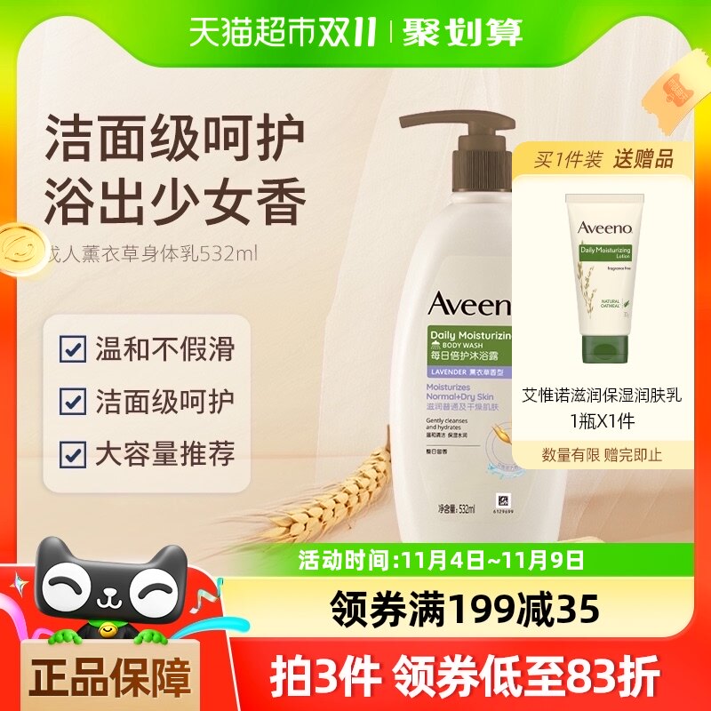 Aveeno/艾惟诺 Лавандовый натуральный увлажняющий гель для душа, 532 мл