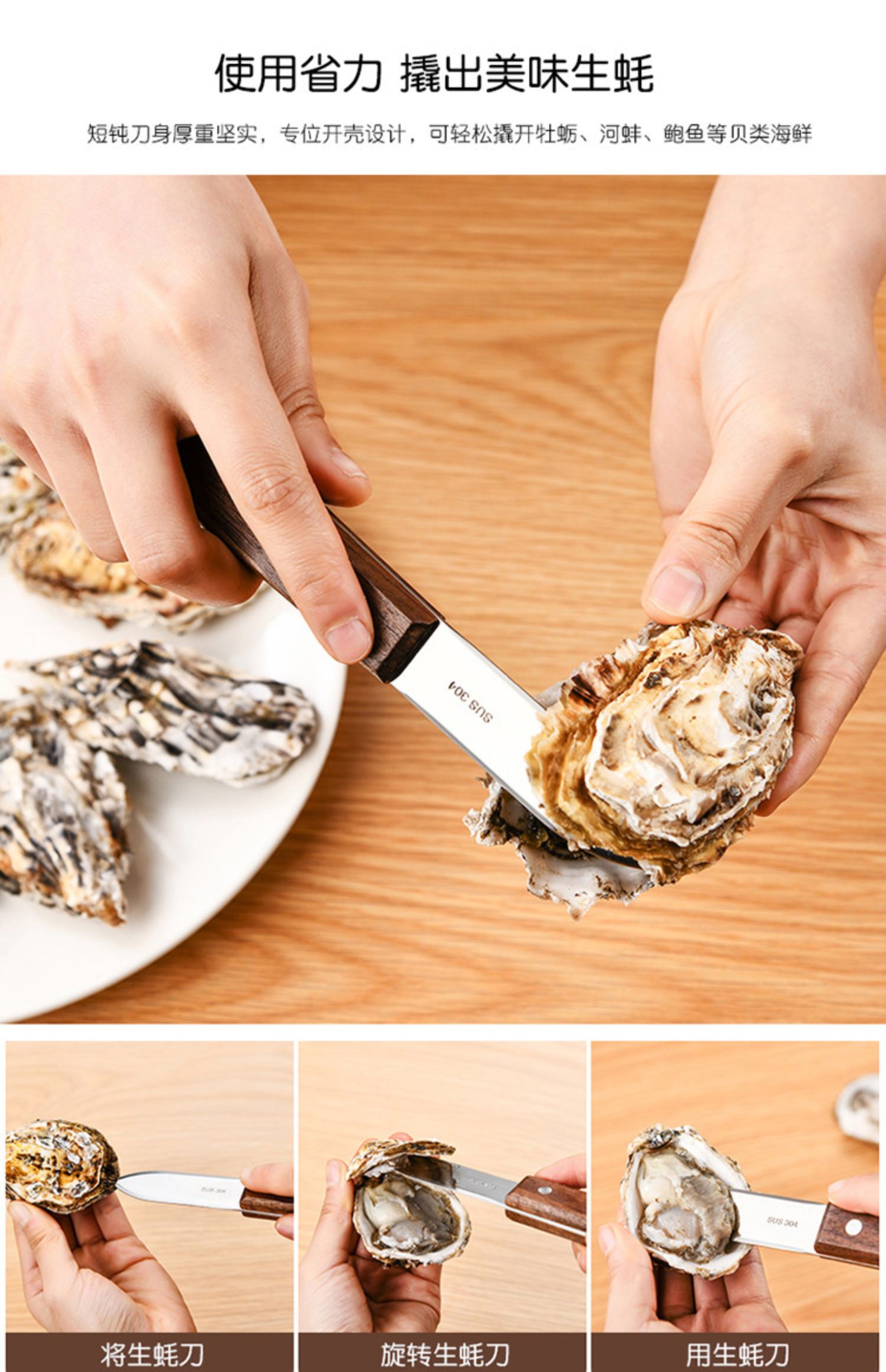 Устричный нож Открытие артефакта утолщенная ручка из нержавеющей стали Pry Oysters Специальный нож, инструмент для открытия Oyster Oyster
