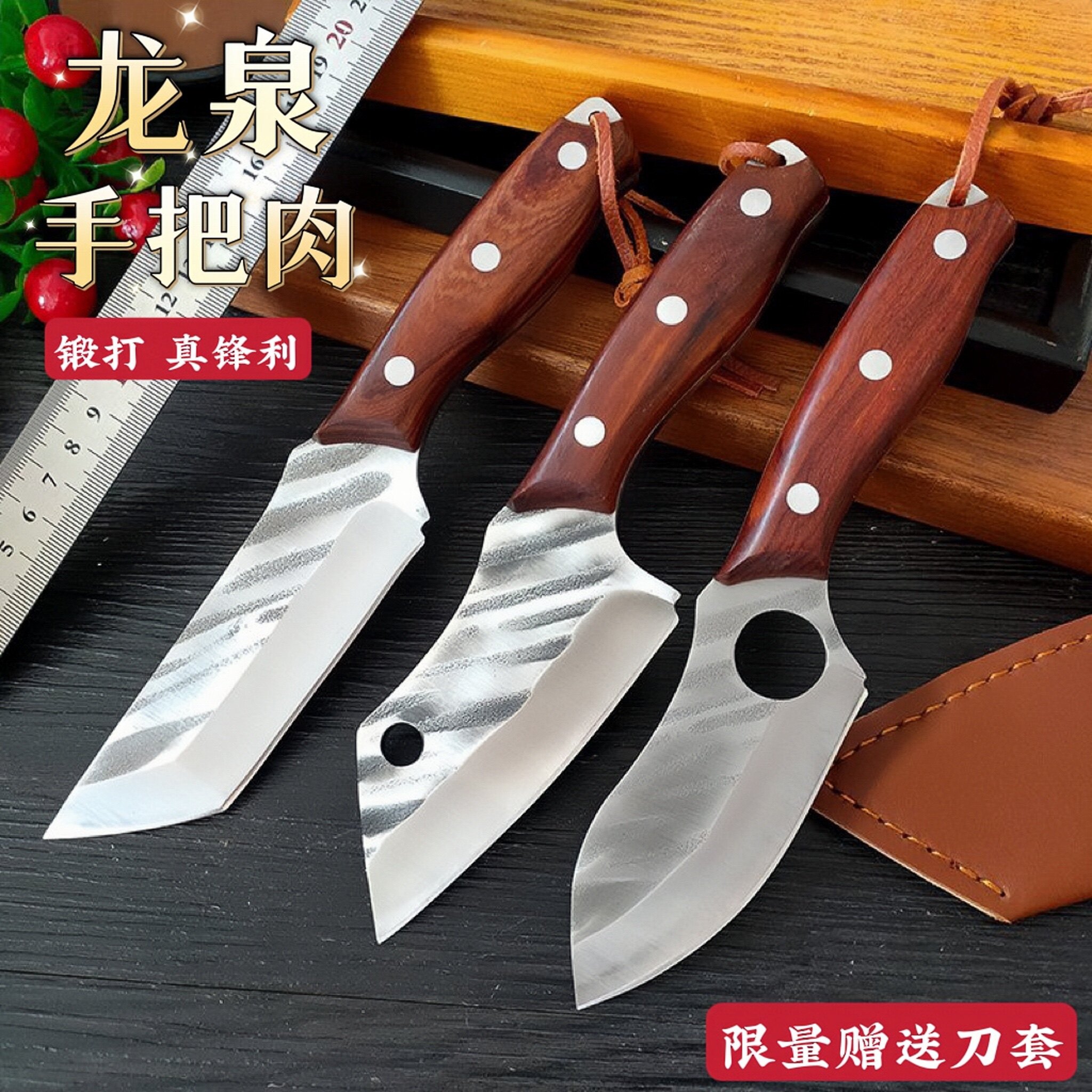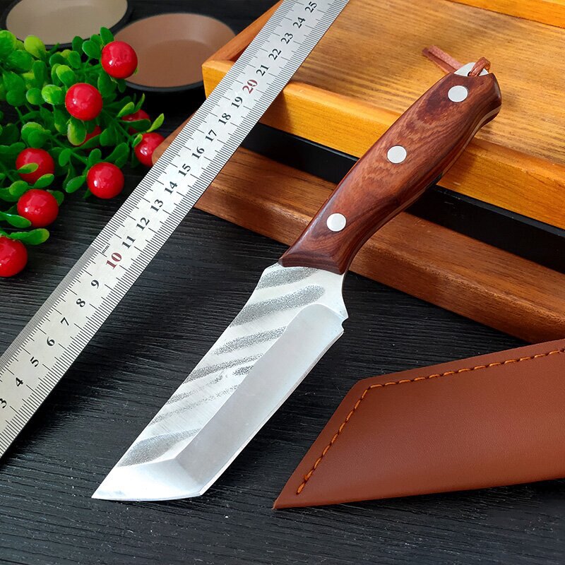 龙泉 Кованый ручной нож для мяса, монгольский нож, нож для фруктов, нож для резки мяса, универсальный обеденный нож, уличный нож из нержавеющей стали