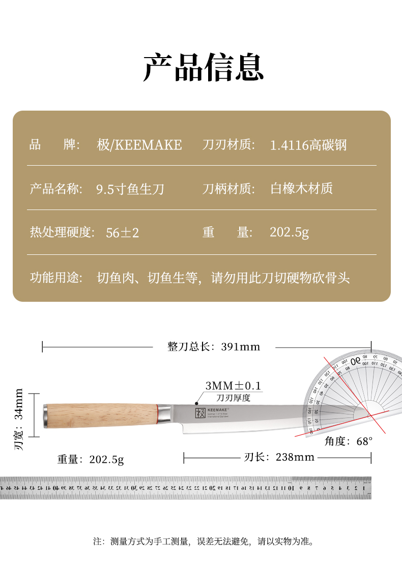 Нож для сашими Jijia, нож японской кухни для лосося, нож для суши, специальный нож для сашими с антипригарным лезвием, нож для рыбного филе