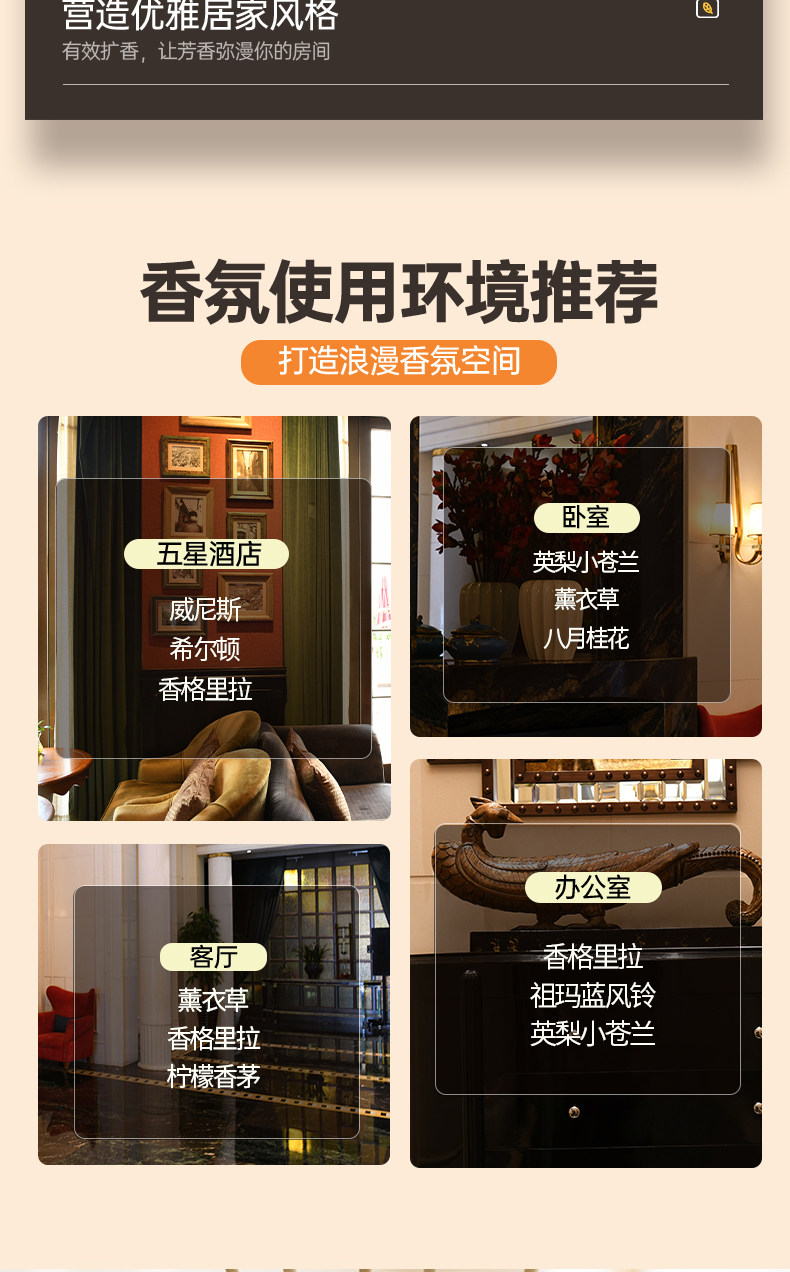 | Аромат: | Gardenia (свежий цветочный аромат), Shangri -la (благовония Star Hotel), Август Османтус (очаровательный цветочный аромат), Лаванда (тихо и удобно), Zuma Blue Bell (мелодия духов), Ингли Сяо Канглан (аромат свежих цветов), Хилтон (High -end Hotel Bance), Венеция (сильные ладаны отеля), Lemon Lemongrass (травяной комар репеллент), Лавандовая свежая цветочная ромашка, Отель Four Seasons (старший отель аромат), Жасмин чай и Сяо Канглан (цветочный ладан) |