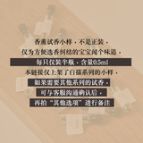 Аромат: Полный набор белых ударов (14 вкусов), Сын, полный целого набора (4 вкуса), Jiangnan Moon Night Osmanthus Garden (китайская мелодия Osmanthus), Yunqi cedar cooking чай (холодная кедровая мелодия), Летом, морской бриз обыкновен (морской цветок и фруктовый сладкий тон), Весенний дождь пьян, Канглан (груша и канглан), Медитация под фиговым деревом (аромат свежего молока без цветов, Масими входит в родной город Мо Нянь (теплая и успокаивающая трава и ладан, Gan Lan Tanmu Guqin (Ци Ферма сжигает ароматное сандаловое дерево), Дерепок Чхиру, Для белого чая больше нет (аромат чистого чая с чистым чаем), Форест -Крик и туман (свежий лес), Будда Сяокин разбудится цитрусовые (трезвый и затянутый), Полуночная блюзовая лаванда (успокаивающий мир и сон помогают), Qingqiu Moon Shadow Little Jasmine (холодная жасминская мелодия), Gardenia перед судом - ночной ветер (нежный цветочный тон Гарден), Другой вкус