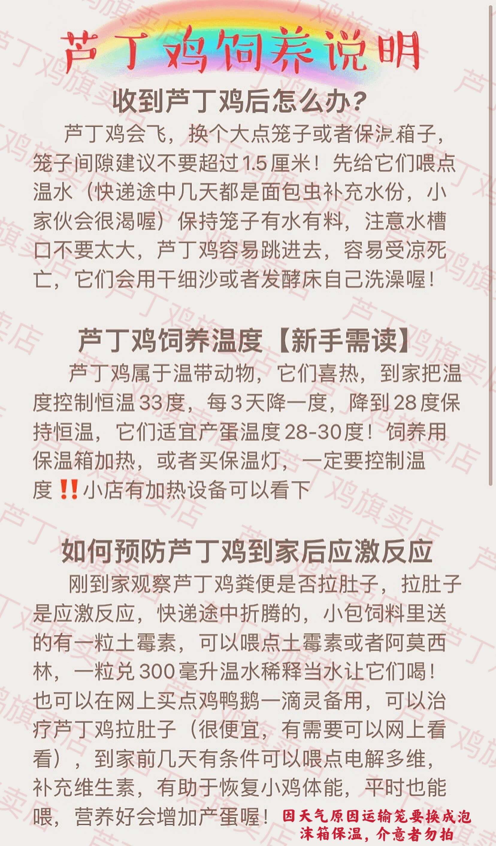 - Основной цвет [один мужчина и одна мать]+транспортная птичья коробка+кормление
