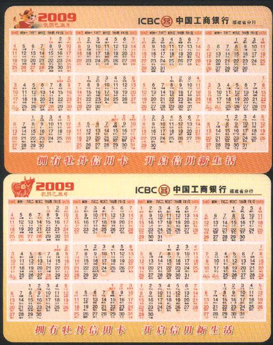 Промышленный и коммерческий банк Китая Fujian Branch 2009 (Ugly) Ежегодный календарный цвет и богатый календарь
