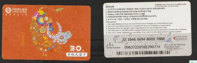 [Северный свет] Китайская мобильная коммуникация Cow 2009-1 (5-1) 30 карта сбора штампов юаня физическое сканирование