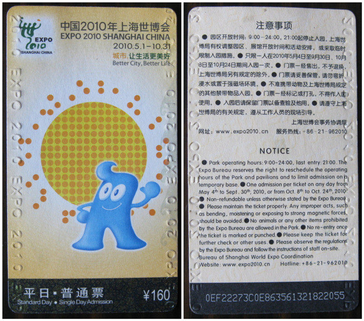 【Имя】 Шанхайская выставка в Китае 2010 года 2010.5.1-10.31 Обычный билет в буд