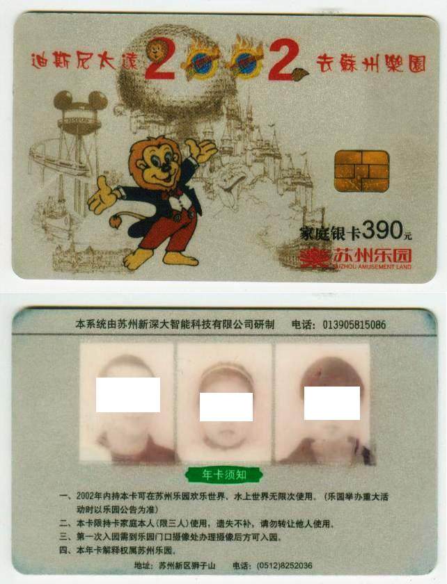 Suzhou Park 2002 Card (семейная серебряная карта), наклейка является положительной и отрицательной стороны карты, только для сбора.