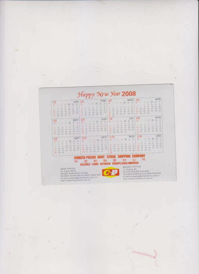 Трехмерный календарь, 2008 года