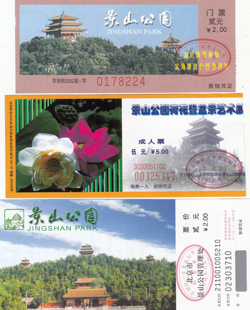 Три билета на Пекинский парк Цингшан (использовались для отходов, только для сбора)