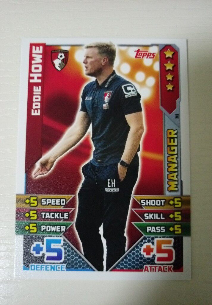 Старшая карта Премьер-лиги Topps 15-16 Дополнительная версия Эдди Ховей Борнмут Карта тренера M1