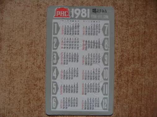 1981 Пекинг отель Calendar Card x