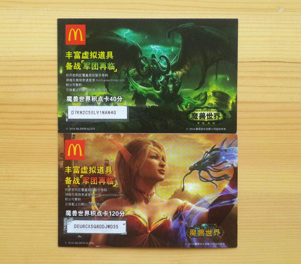 Коллекция онлайн -карт World of Warcraft McDonald's, два набора из двух наборов