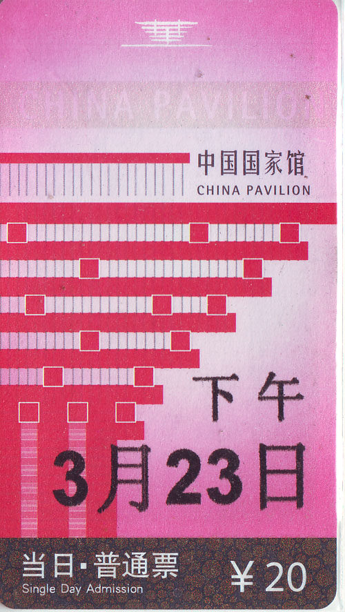 Билетная карта Shanghai World Expo во второй половине дня 23 марта (использовалась)