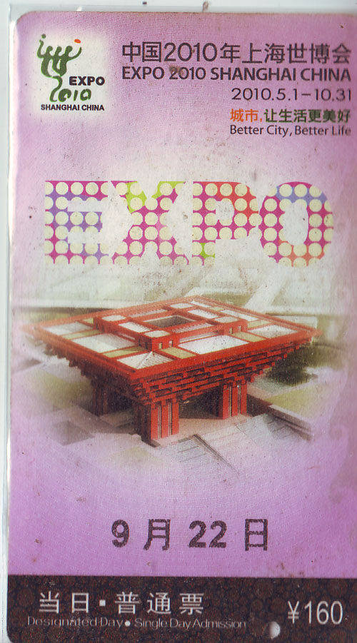 Шанхайская карта билетов на выставку в Шанхае 22 сентября в день обычных билетов.