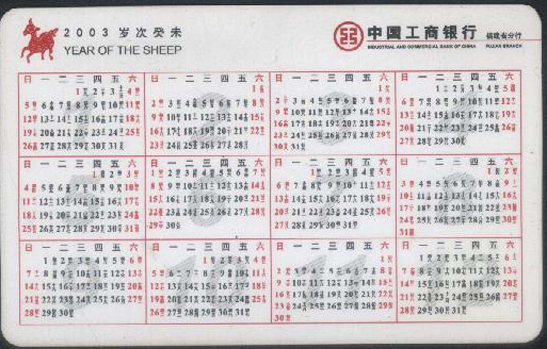 Промышленный и коммерческий банк Китая Fujian Branch 2003 Guiwei Sheyang Годовой карт продукт показан на рисунке
