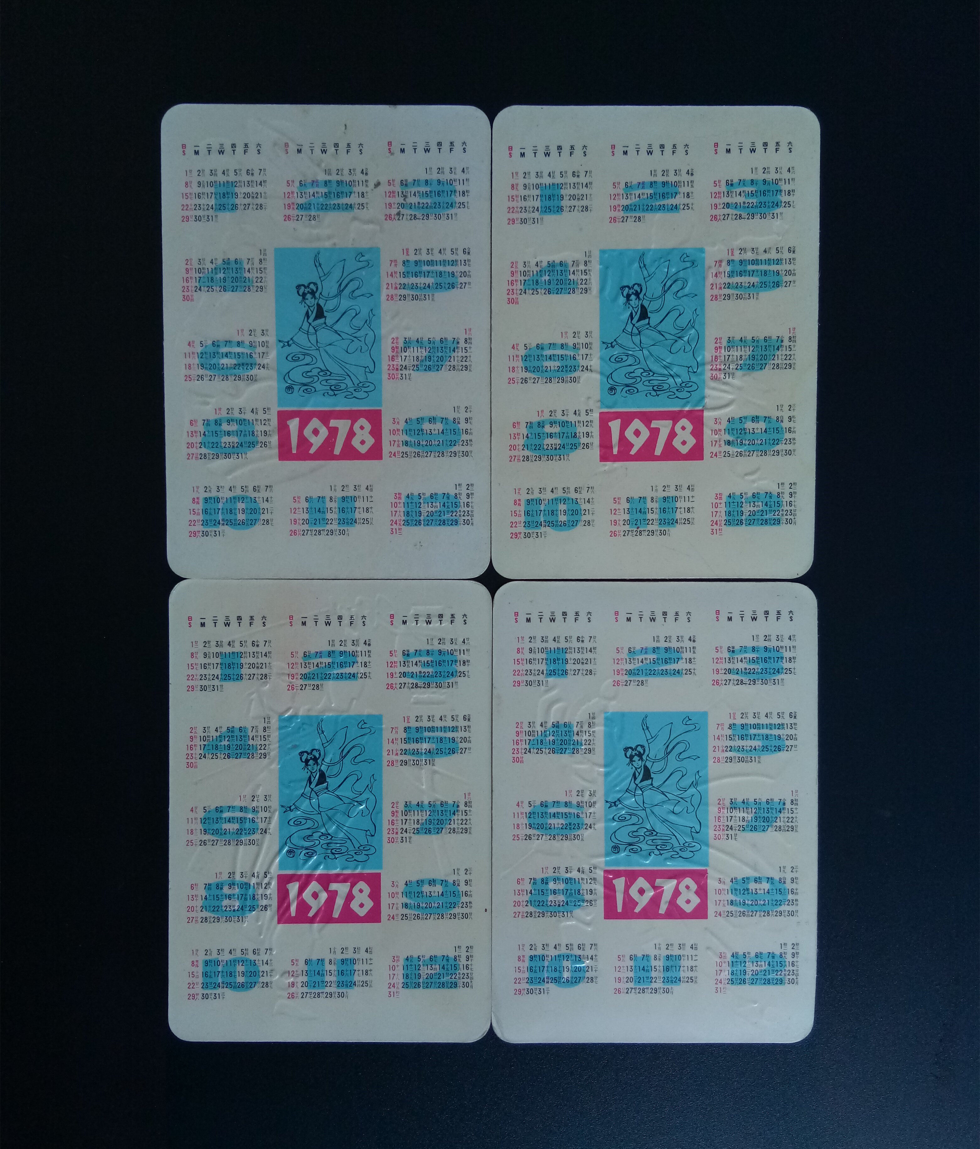Всего есть четыре картины. В 1978 году сияли красные огни, Югонг переместил гору, заставил его отправиться в Ляншан и календарь лояльного танца души.Длина и ширина 10х7 см.