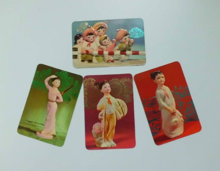 Керамическая кукла, набор карт 1977 года, 4 штуки, Гуандонская керамическая компания, бумажная пластиковая карта календаря, девять.